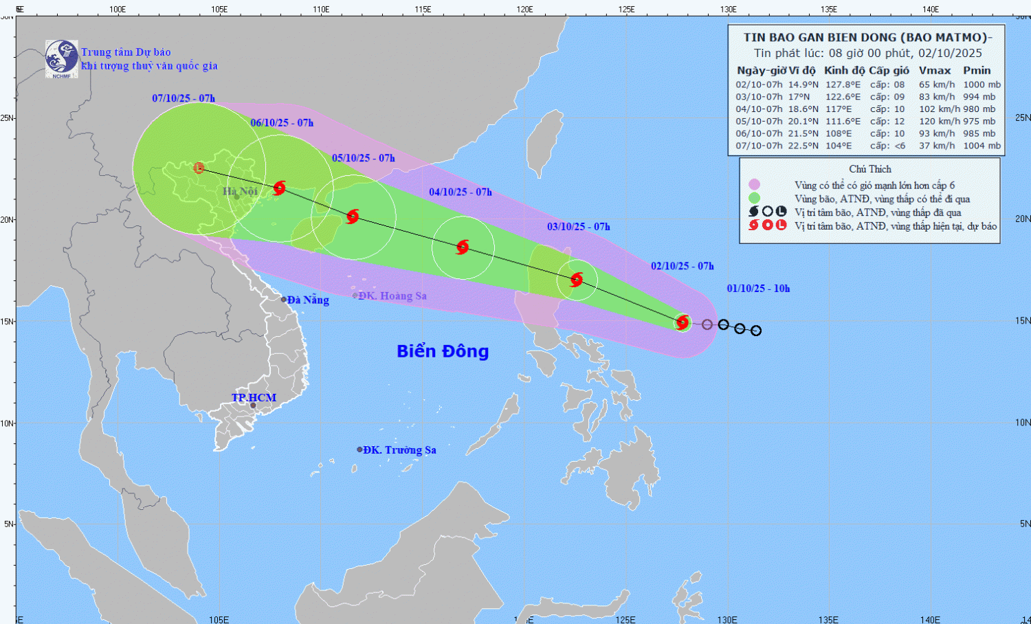 Hình1. Bản đồ dự báo quỹ đạo và cường độ bão phát lúc 08h00 ngày 02/10/2025