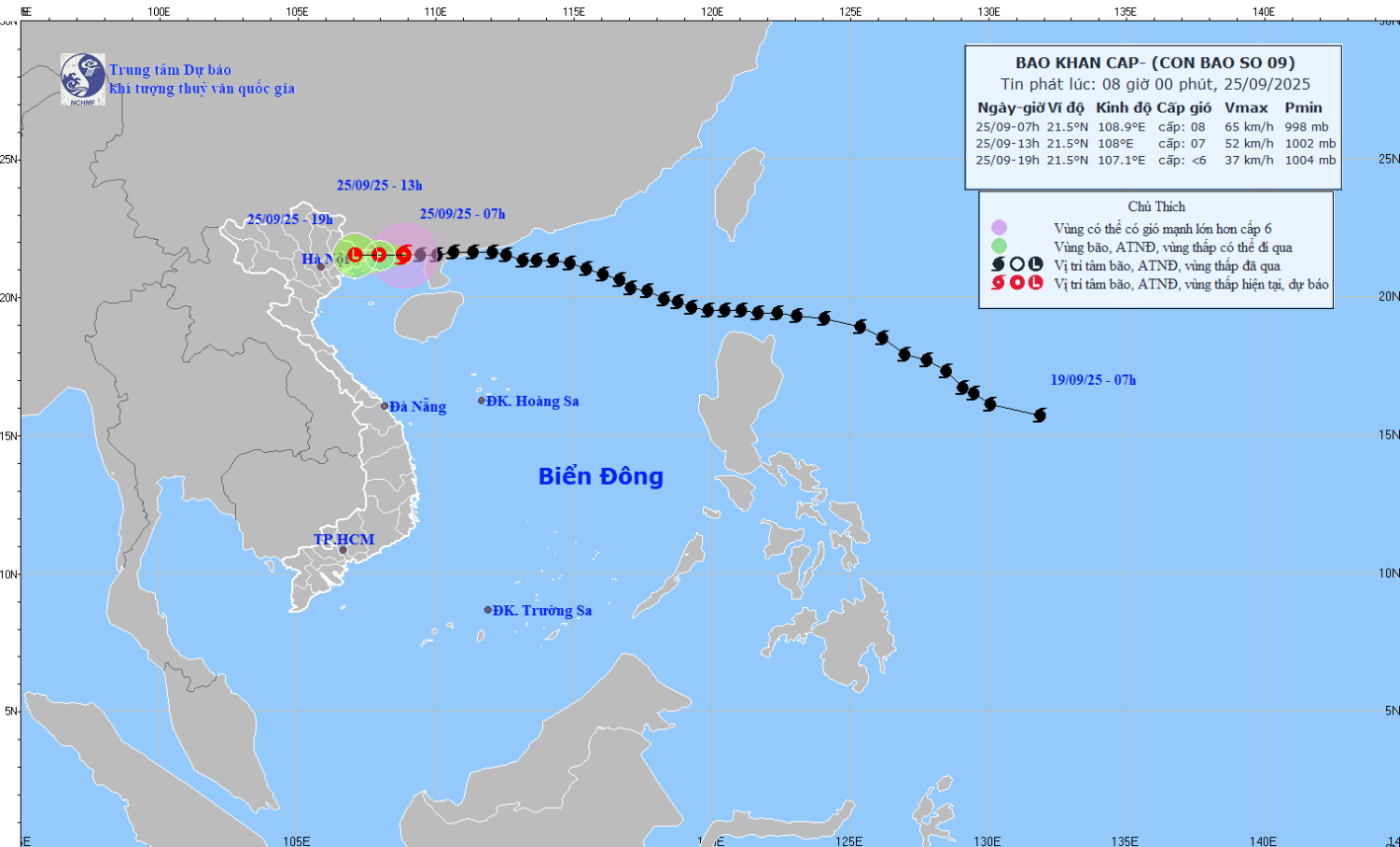 Tin bão khẩn cấp - cơn bão số 09 năm 2025 (08h00 ngày 25/9)