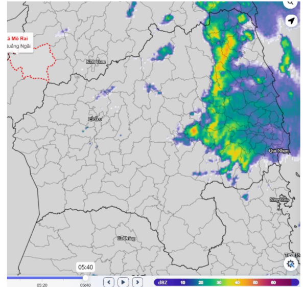 Hình ảnh ra đa tại khu vực tỉnh Gia Lai
