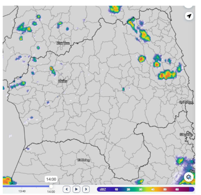 Hình ảnh ra đa tại khu vực tỉnh Gia Lai