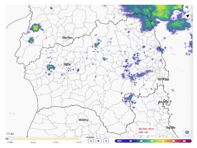 Hình ảnh ra đa tại khu vực tỉnh Gia Lai