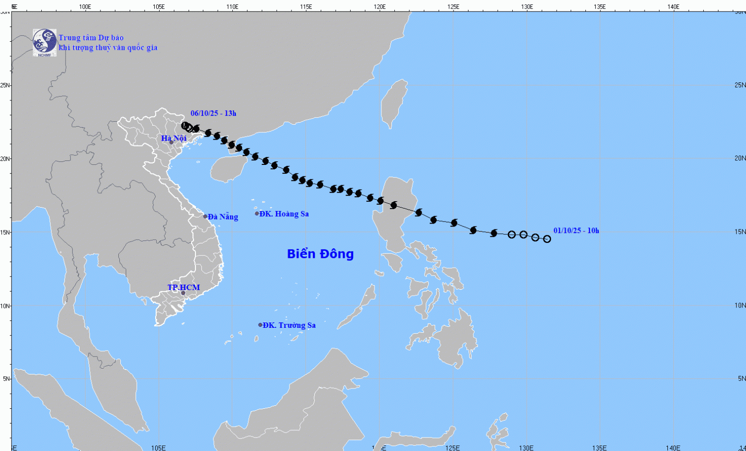 Hồi 13 giờ, vị trí trung tâm vùng áp thấp ở vào khoảng 22,2 độ Vĩ Bắc; 106,8 độ Kinh Đông. Sức gió mạnh nhất ở trung tâm vùng áp thấp giảm xuống dưới cấp 6 (dưới 39km/giờ).