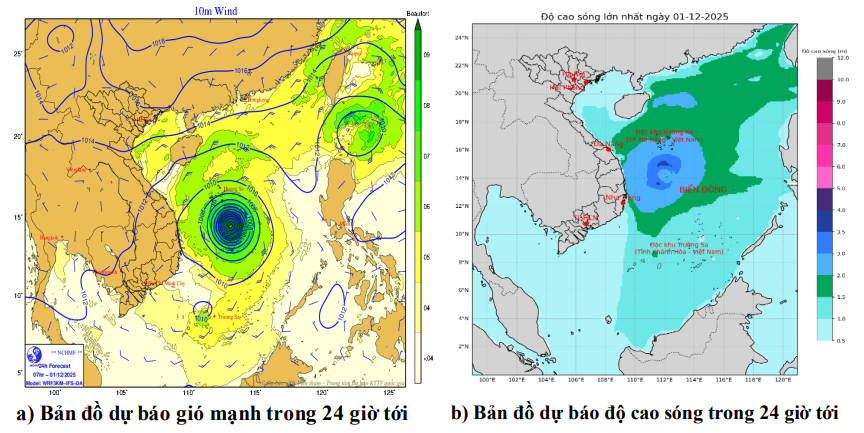 | Ngày và đêm 01/12 | Vùng biển ven bờ | Cấp 6, giật cấp 78. Biển động. | Bắc | 2.0-4.0 | Bắc |