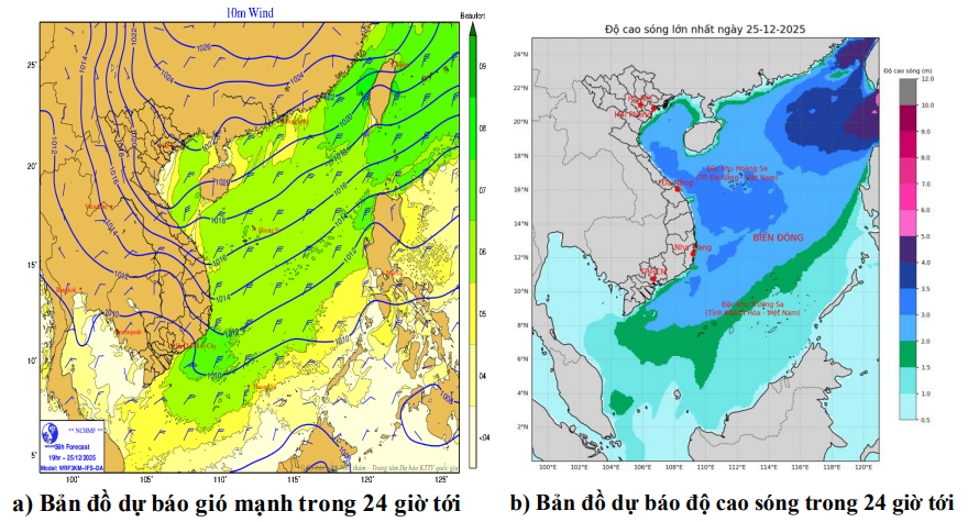 Ngoài ra, ngày và đêm 25/12, vùng biển Gia Lai có mưa rào và dông rải rác. Trong mưa dông có khả năng xảy ra lốc xoáy và gió giật mạnh