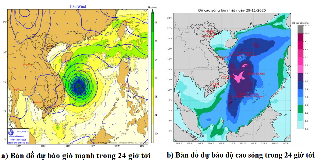 Ngoài ra, ngày và đêm 29/11, vùng biển Gia Lai có mưa rào và dông rải rác. Trong mưa dông có khả năng xảy ra lốc xoáy và gió giật mạnh.