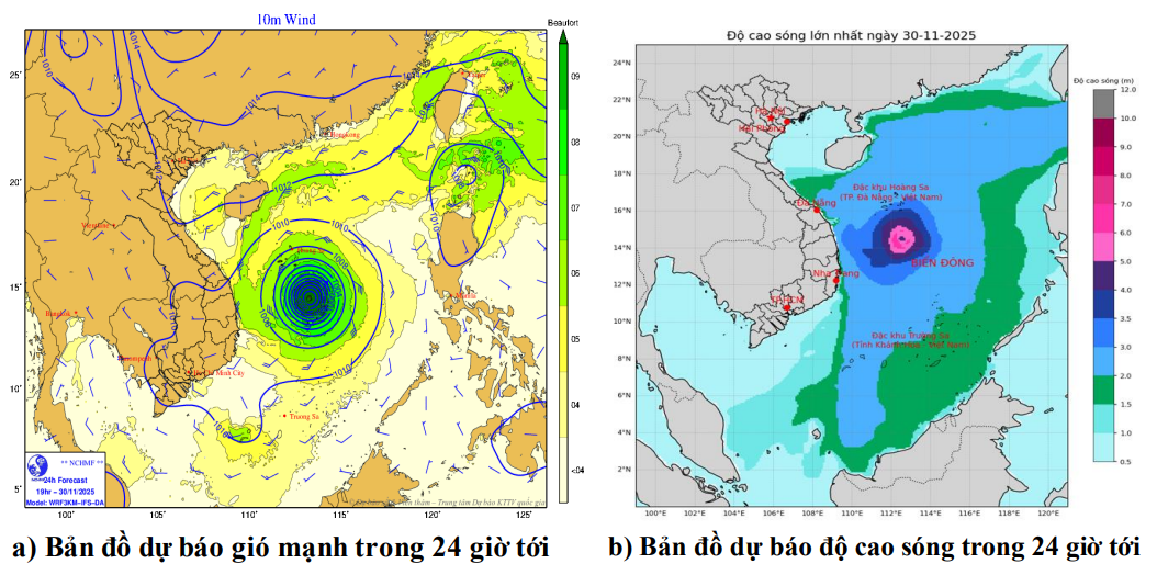 | Ngày và đêm 30/11 | Vùng biển ven bờ | Cấp 6, giật cấp 78. Biển động. | Bắc | 2.0-4.0 | Bắc |