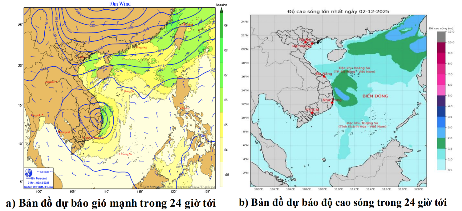 | Đêm 02 và ngày 03/12 | Vùng biển ven bờ | Cấp 6, giật cấp 78. Biển động. | Nhiều hướng | 1.5-3.5 | Nhiều hướng |